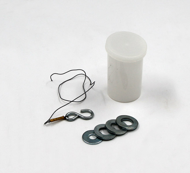 Ca. 20 cm lange dünne Schnur mit daran befestigtem S-Haken. Zum Beispiel um mit beiliegenden Scheiben die Anziehungskraft eines Elektromagneten zu überprüfen. Gemeinsame Aufbewahrung in runder Dose.