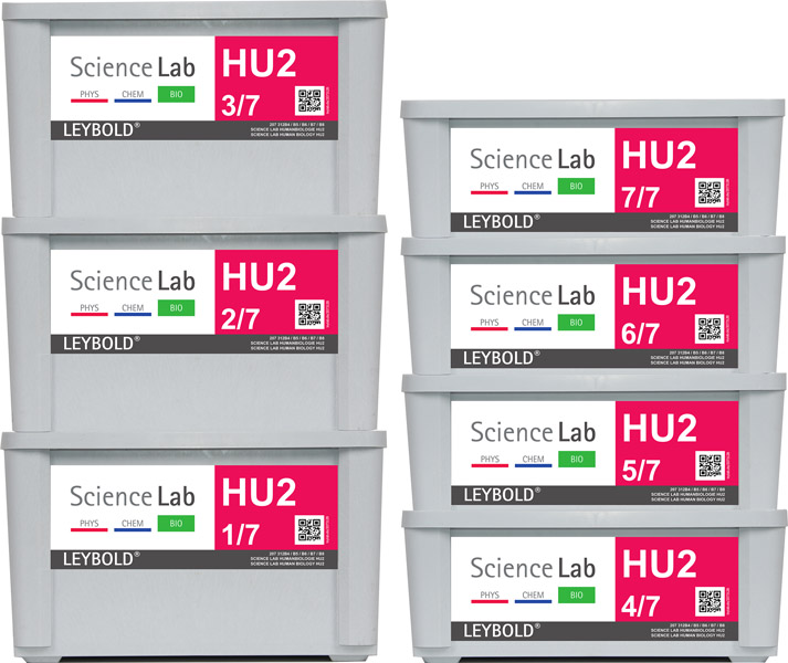 Schülerexperimentierblock des Schülerversuche-Systems Science Lab im Bereich Biologie. Aufbaumaterial für  4 Arbeitsgruppen in nach Geräten  sortierter Aufbewahrung. Mit dem Geräteblock HU2 können, zusammen mit dem Science Lab Biologie Basis BB (207 300B4), mehr als 30 Versuche in der S  I und S  II durchgeführt werden.