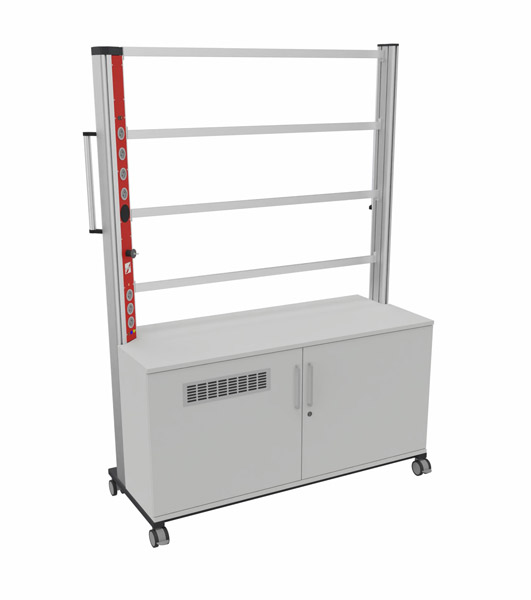 fahrbarer Experimentierstand mit Schrankelement und Elektroinstallation