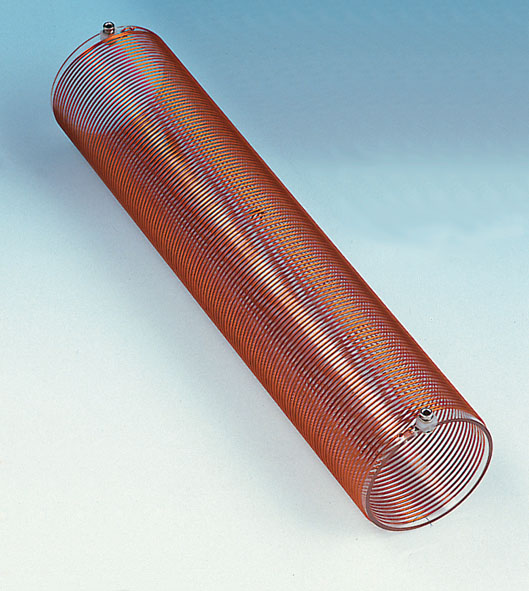 Pour mesurer l'intensité du champ magnétique en fonction du courant et du nombre de spires, pour démontrer que l'intensité du champ ne dépend pas de la surface de la bobine ainsi que pour les expériences quantitatives sur l'induction et les circuits électriques oscillants ; seulement pour les très basses tensions. Le corps de la bobine est en plexiglas et permet de voir à l'intérieur et à travers la bobine.
