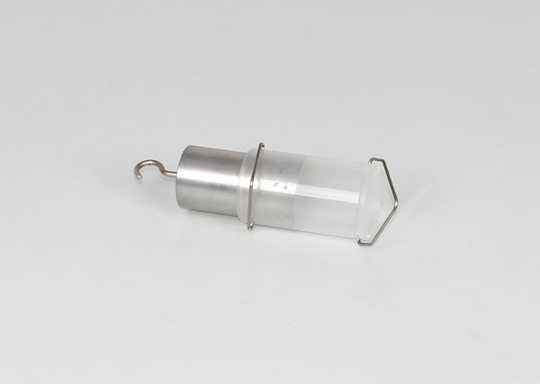 Pour démontrer le principe d'Archimède. Récipient cylindrique à deux poignées dans lequel s'insère exactement un cylindre creux avec crochet.