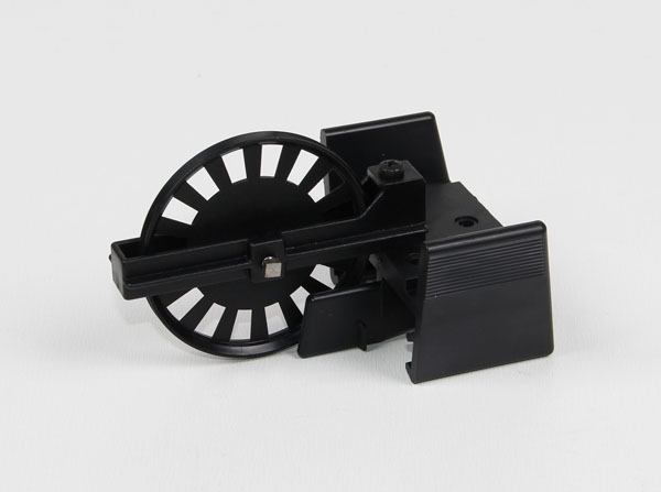 Pour des expériences sur le banc équipé d'un chariot et d'un rail métallique de précision (460 81). Axe à pointe (presque sans frottement), faible moment d'inertie et guidage précis du fil dans la gorge.