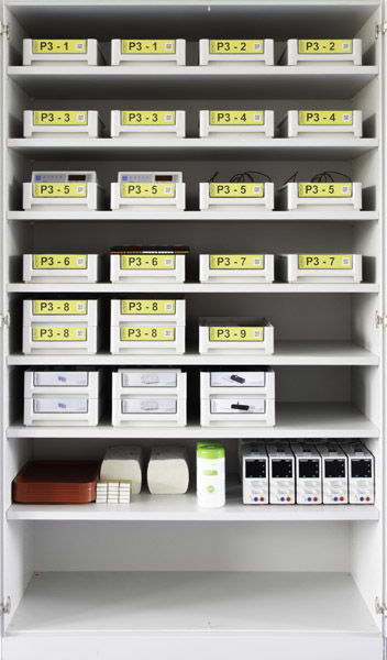 Une partie des tiroirs contient des produits chimiques. Certains d'entre eux ne peuvent être stockés que dans une armoire à ventilation passive, par exemple l'armoire recommandée