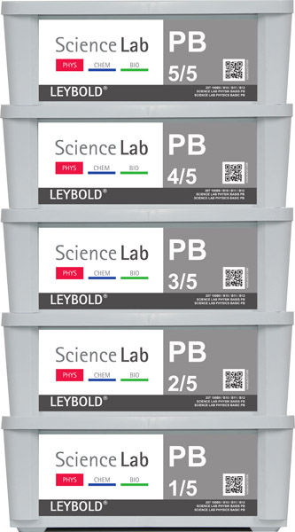 Bloc pour les travaux pratiques avec le système d'expériences pour élèves Science Lab. Matériel de montage trié par composant pour plusieurs groupes de travail correspondant à la taille de bloc choisie, le tout rangé dans une boîte.